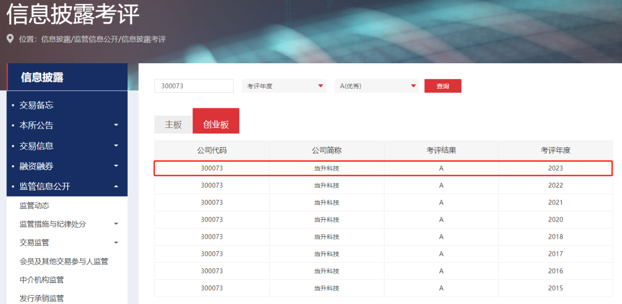 近日,深圳證券交易所在官方網(wǎng)站公布了深市上市公司2023-2024年度信息披露評(píng)價(jià)結(jié)果,當(dāng)升科技再次榮獲最高評(píng)級(jí)“A”級(jí)(優(yōu)秀),這是公司第8次獲此殊榮。本次參與考核的1327家深交所創(chuàng)業(yè)板上市公司中,有201家公司獲評(píng)“A”級(jí),占創(chuàng)業(yè)板上市公司總數(shù)的15.15%;其中,北京轄區(qū)128家創(chuàng)業(yè)板上市公司中,有23家獲得“A”級(jí),占比為17.97%。據(jù)悉,除當(dāng)升科技外,4年來北京轄區(qū)僅有7家創(chuàng)業(yè)板上市公司信息披露評(píng)價(jià)連續(xù)獲得“A”級(jí)。