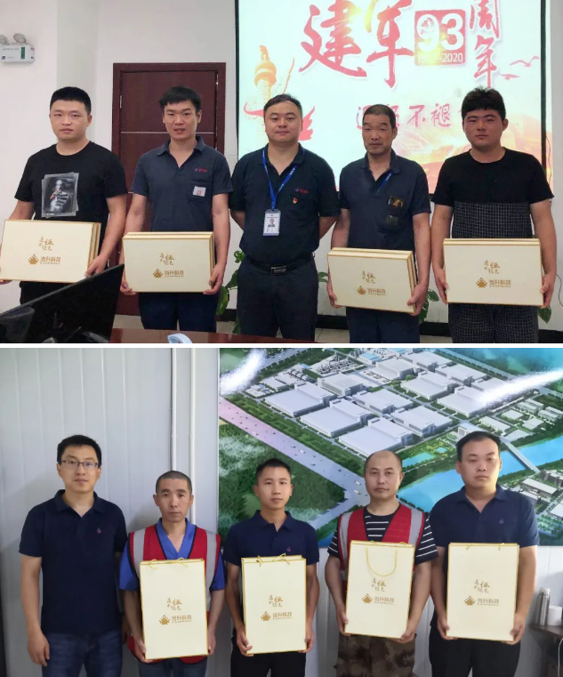 江蘇當(dāng)升總經(jīng)理陳新、常州當(dāng)升常務(wù)副總陳翔宇分別對(duì)子公司退伍軍人進(jìn)行了慰問(wèn),并頒發(fā)了紀(jì)念品。