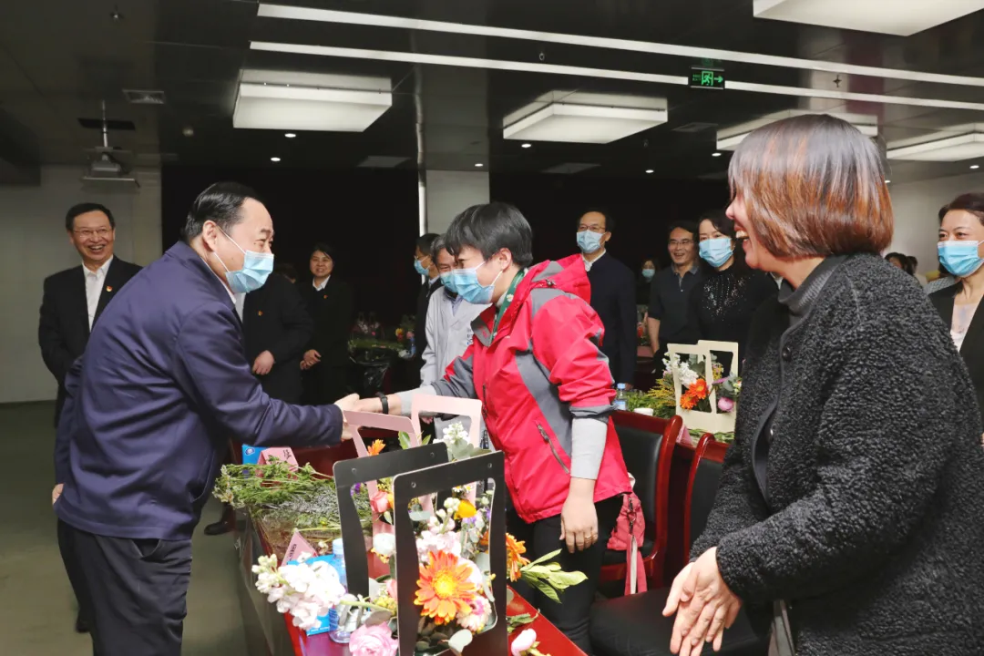 調(diào)研中,適逢三八國(guó)際婦女節(jié),郝鵬看望慰問了正在聽插花講座的企業(yè)女職工,向大家致以節(jié)日的祝賀和美好的祝福。